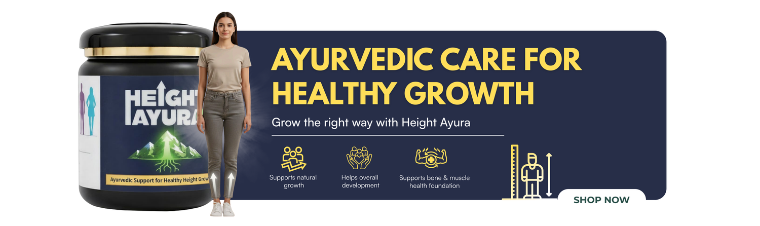 Height Ayura is an Ayurvedic wellness formulation designed to support bone strength, posture, digestion, and overall physical development using traditional herbal ingredients.